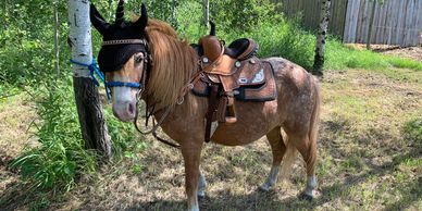 Hercules is our resident kids pony born in 2009.This pony started off tied up in a barn cause he scared the owners to coming home with me while I still loved in Ontario. He is known by many with his Fabio attitude. He is the pony all the little kids start on. This sassy pony steals everyone's heart, taking care of his riders and captivates his audience. He is Hercules cause he is little but mighty.