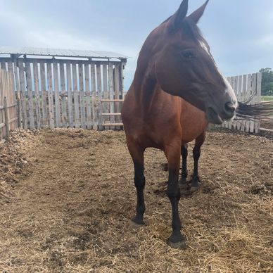 Melody is our OTTB Top Rockette born February 4,2006 in our breeding program. Her future foals will be up for sale. This sweet girl is currently being the best step mom to Zeus. She has such personality and quirks that you cant help but chuckle at her.