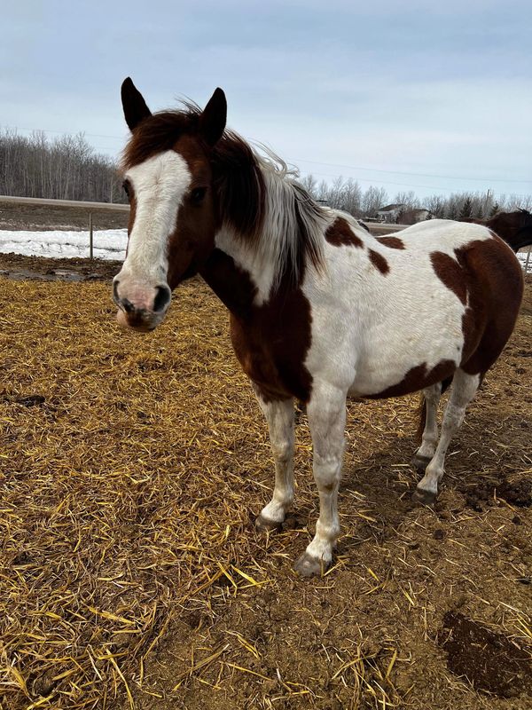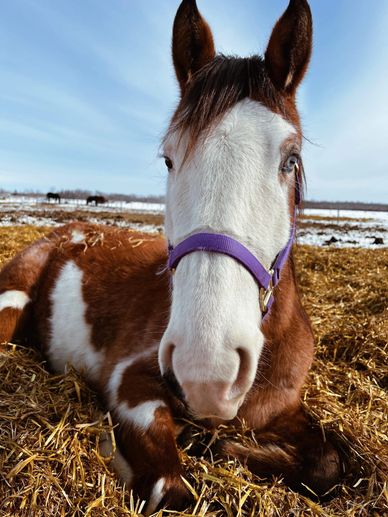 Bella is a 2015 mare can be a Miss Sassy Pants under saddle and takes a strong willed rider, but is a complete in your pocket horse on the ground. She will do almost anything for a treat, Except stay clean! (That's a rare sight, so be sure to take a picture) Her three favourite things are treats, napping and rolling. Don't read too much into her ears either, those really are her happy ears... Promise!