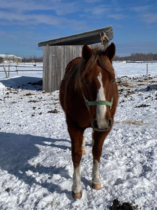 Kasha is our steddy eddie, old reliable, born around 1998, she tells more about a riders ability then what you can say. She is a sassy redhead who let you know what she's is thinking. While she is not the favourite for tacking up she is the babysitter horse who will take care of her rides. our youngest riders can safely ride her.