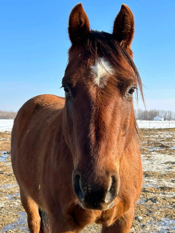 Sabrina is a retired senior broodmare from Auction. Her mom just wants the best retirement life for her. She enjoys eating and taking long naps in the thick bed of straw. While she is senior she is happy and comfortable, and enjoys attention and snacks from all the boarders.