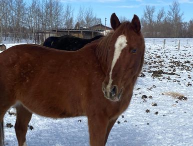 Millie is a registered AQHA C.R. Doll mare born May 2016. This born and raised Manitoba girl is sweet as pie to her people. The daughter of reining horse parents she definitely inherited her parents signature stop. She loves to go fast and tells you exactly what is on her mind. She is much loved.
